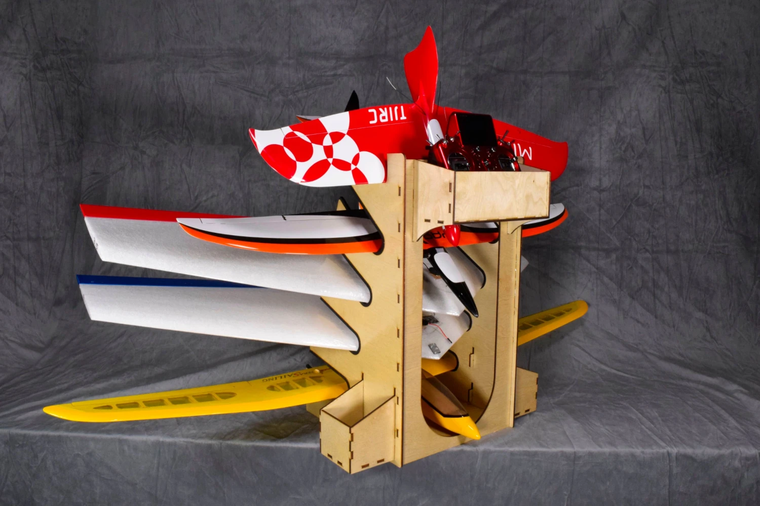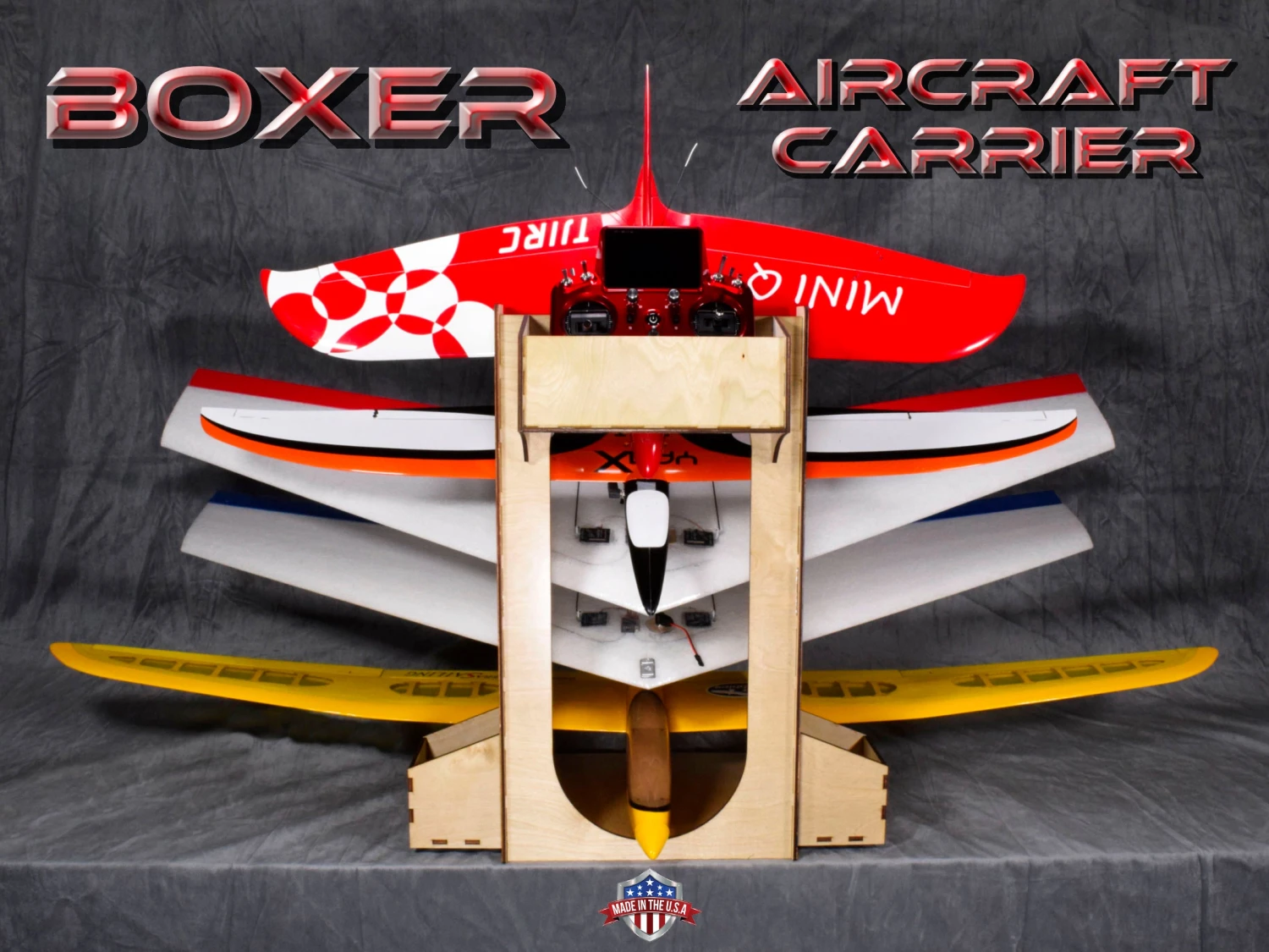 When loaded the Boxer will remain level when picked up. If you put a transmitter or other heavy items in the optional storage box at the top, the weight will increase the angle of the planes making them more secure in the Boxer’s slots.