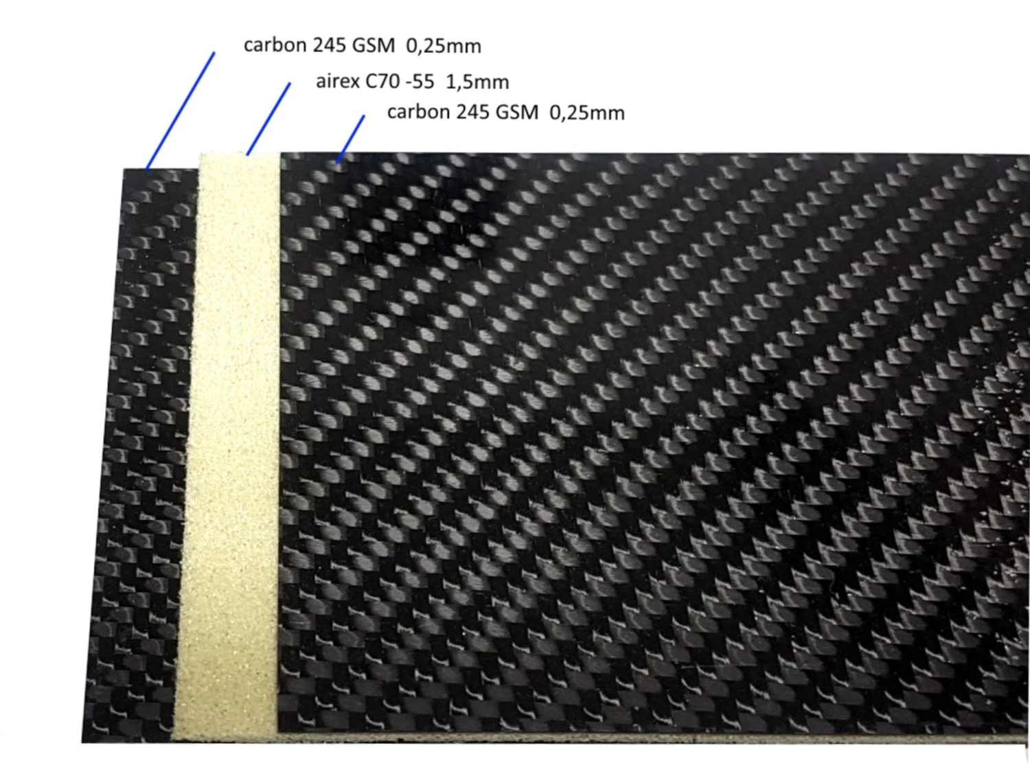 Composite plates made from a sandwich of Carbon / Airex Foam / Carbon.
