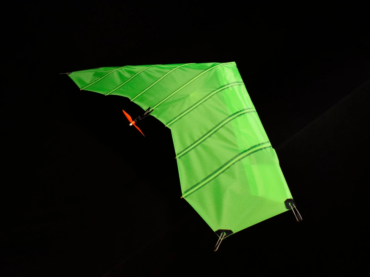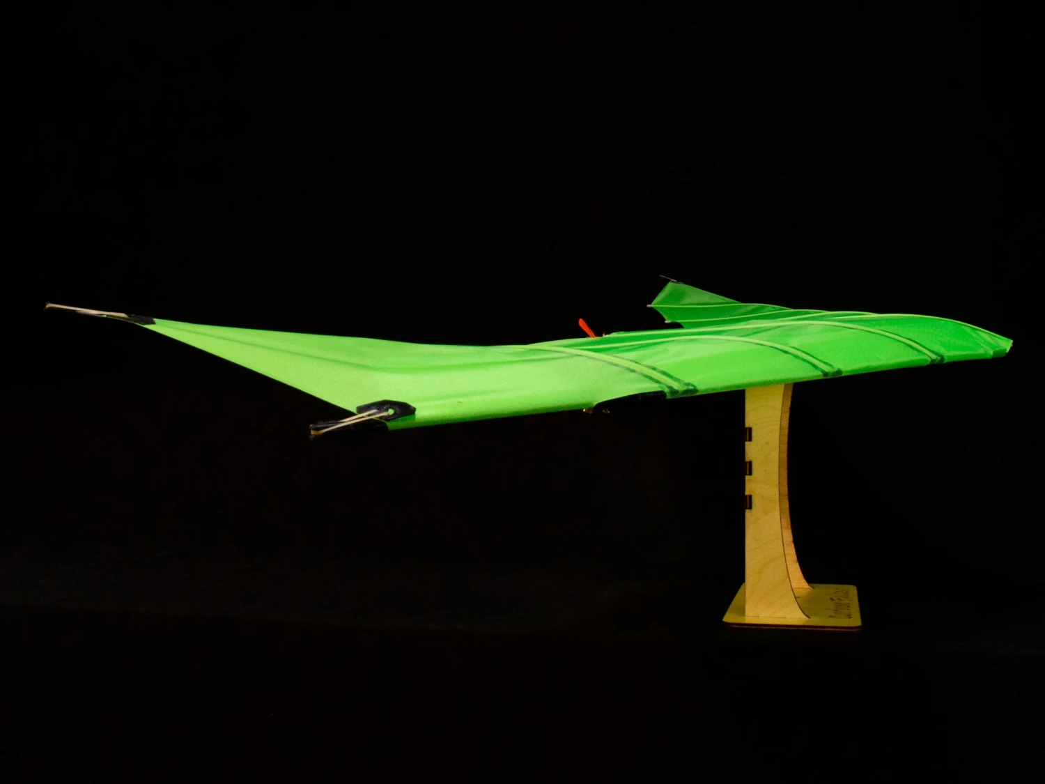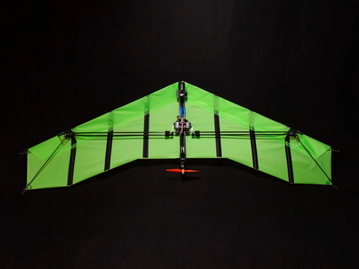 The lightweight and robust frame is mostly made from carbon fiber, that supports a colorful, high strength rip-stop fabric sail. The airfoil shape is provided by specially designed ply battens that don’t lose their shape. The fabric we utilize is an advanced material designed in the USA for sailboat spinnakers. The fabric and the frame design combines to make a VERY durable aircraft.