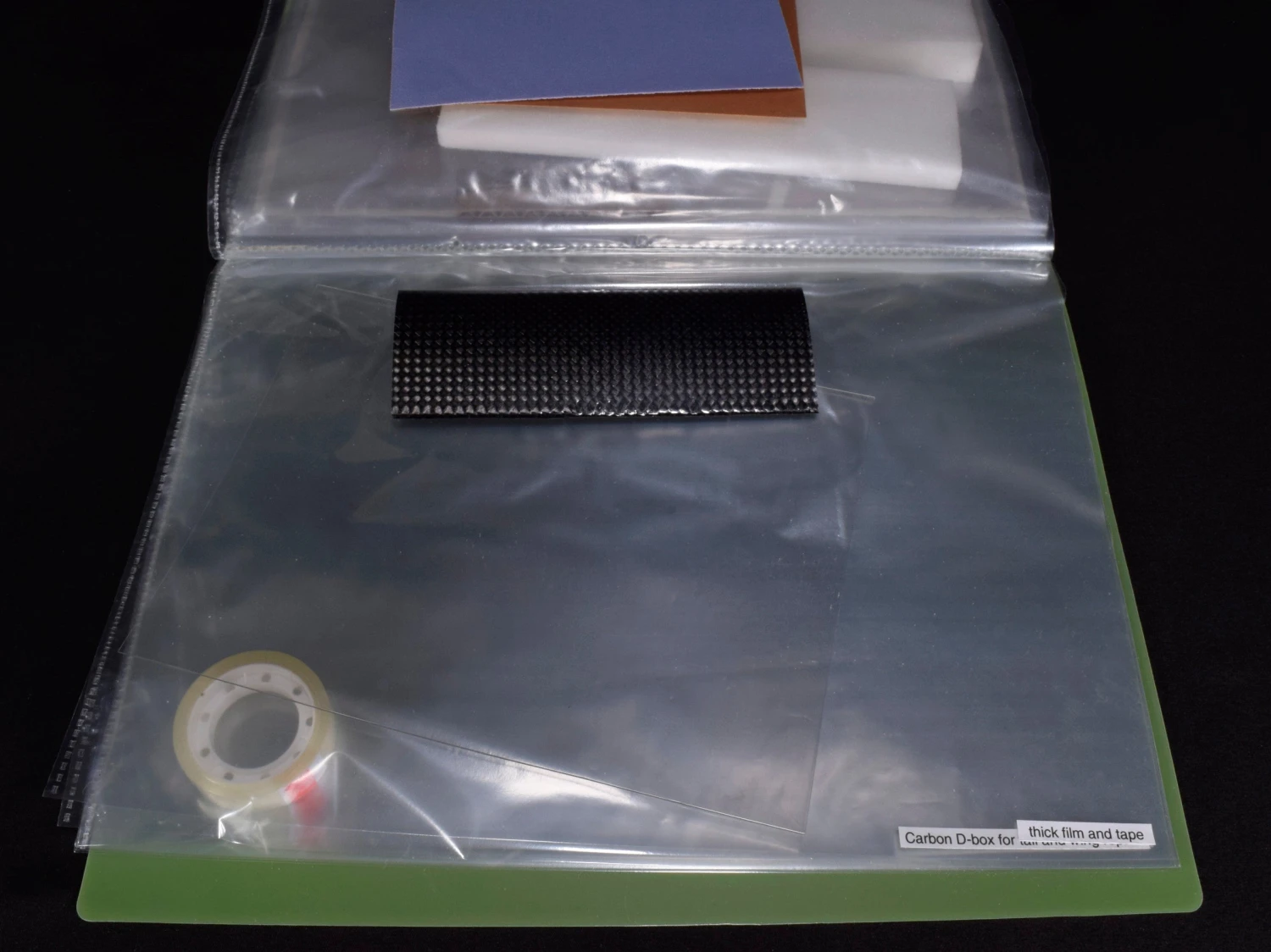 A repair kit for F5J, F3F, F3F and other larger composite gliders, it comes with Carboweave of various densities, carbon tow, glass fiber, foam core material and more for various repairs. The kit comes packaged in a binder folder that keeps the fabrics flat and free from harm; the folder is also great for long term storage.