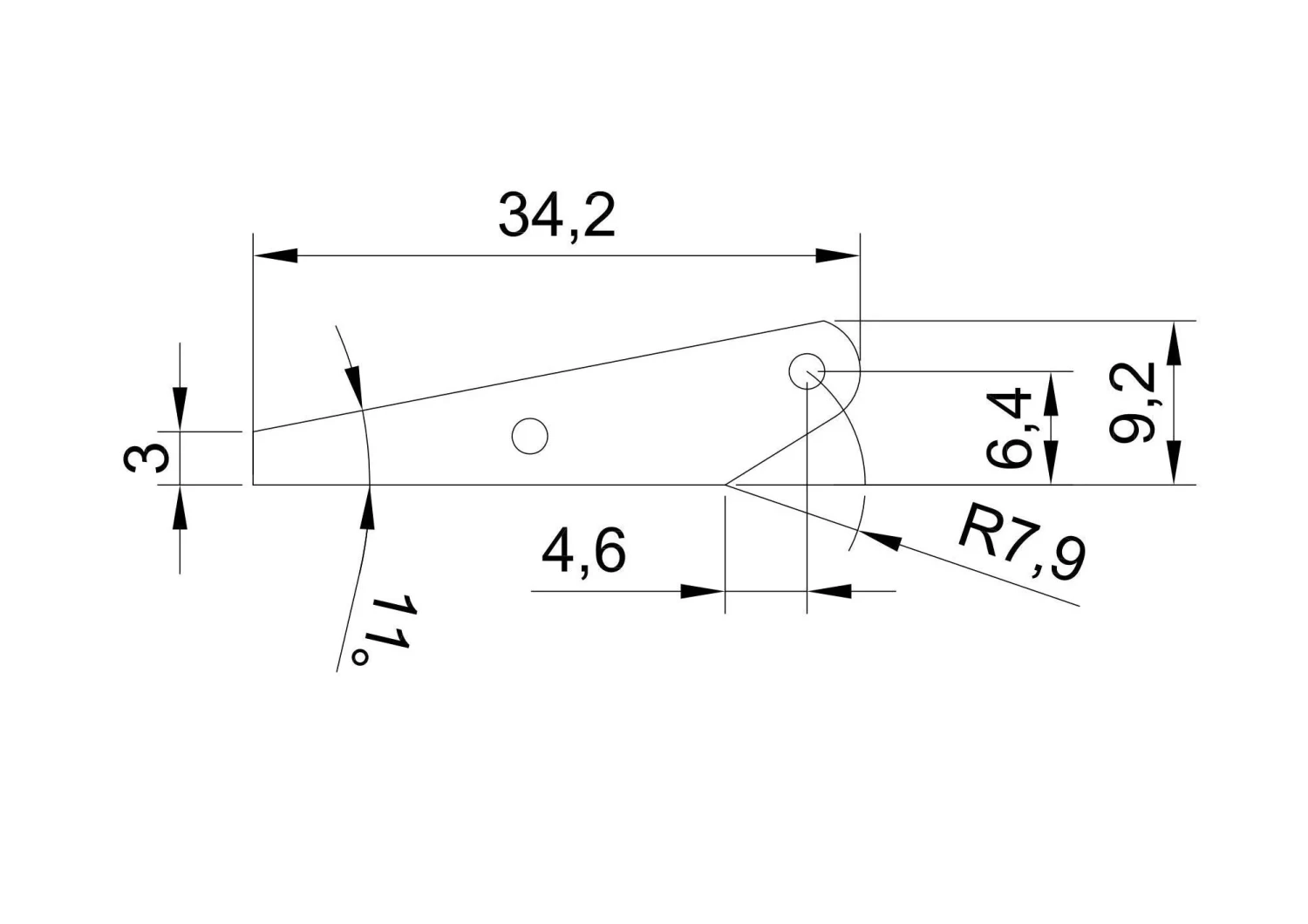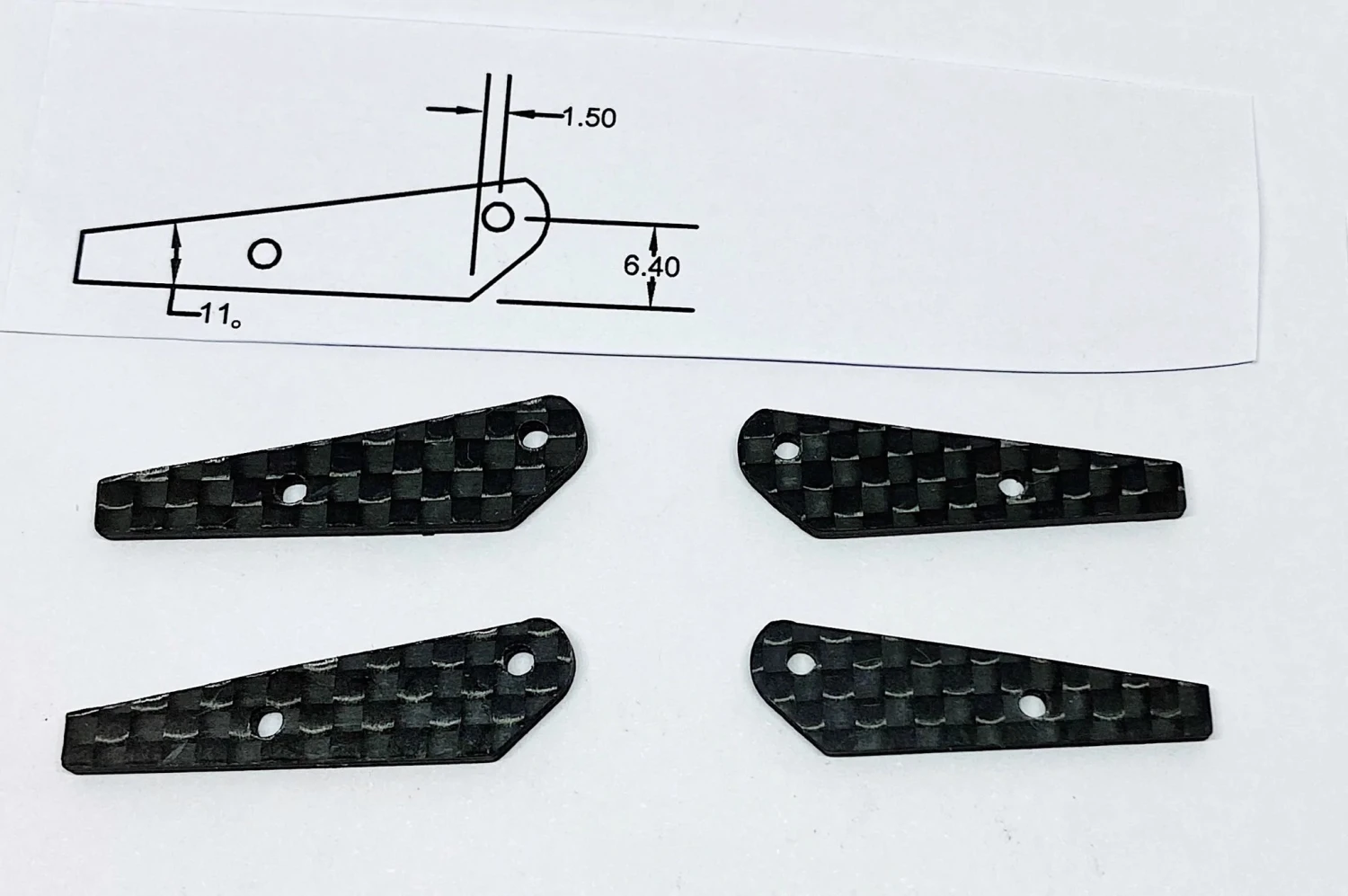 Carbon fiber control horns. Strong enough for F3F or F3b ships. See picture above for dimensions.