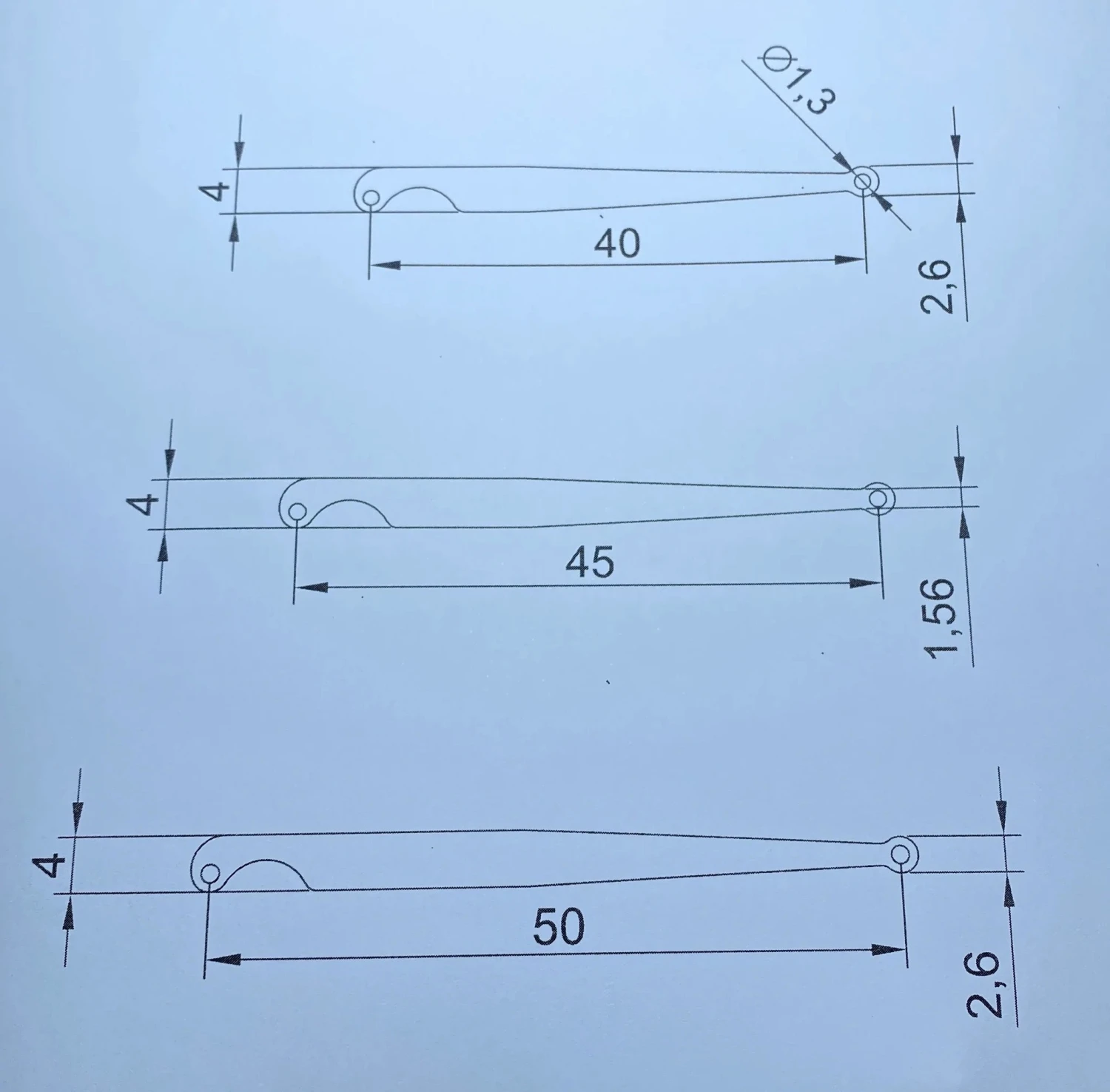 Designed to work with Tomas Liu’s LDS system; these push rods are optional to using Tomas’s threaded adjustable or the glued carbon rods. They are especially useful for thin wings as the push rod profile is thinner at the control surface end than the other two options. (see pics) These are compatible with the KST X06, X08 and the MKS 6120 LDS kits sold on this site.