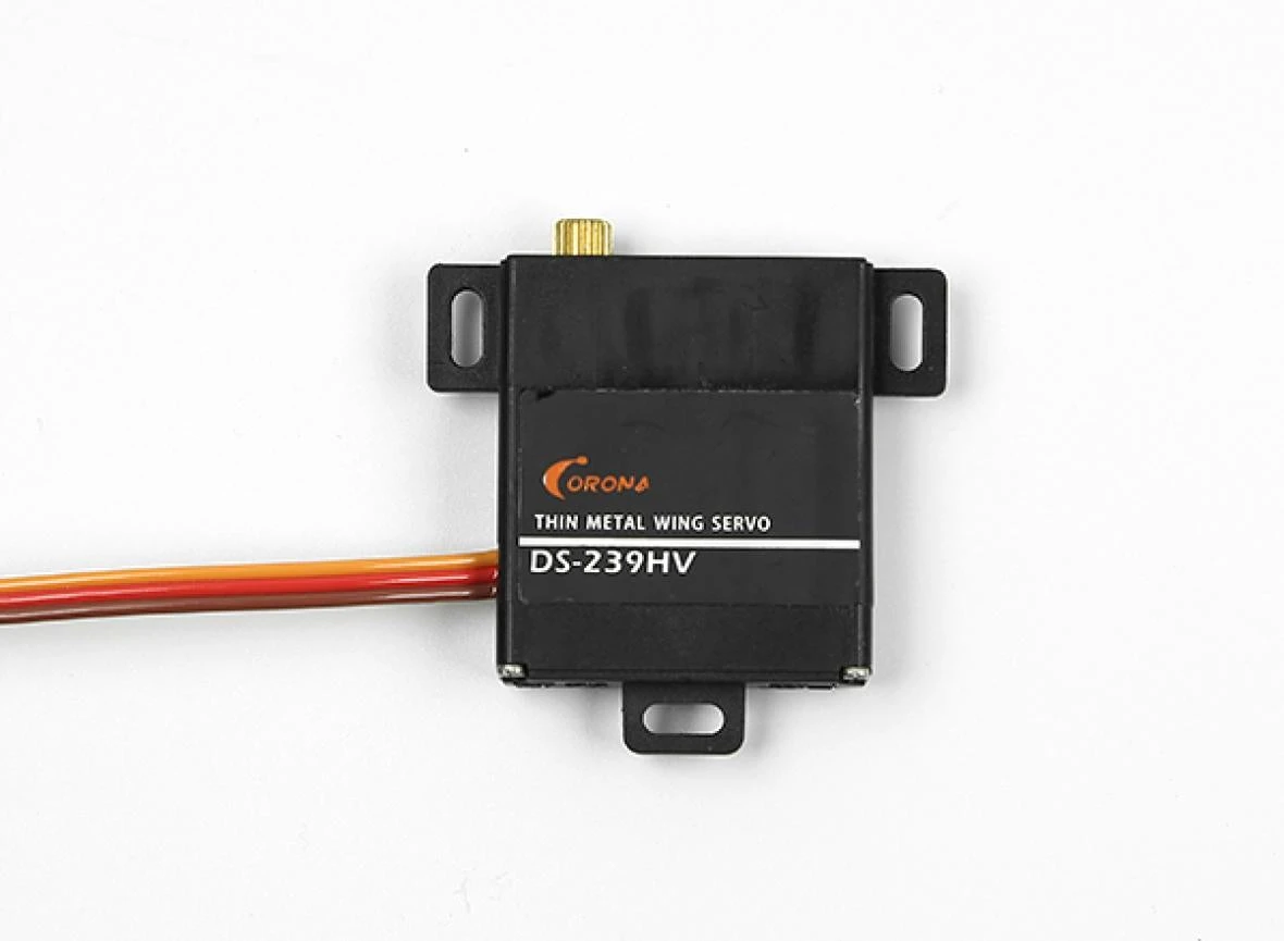 Corona presents the DS239HV. This inexpensive, high voltage wing servo puts our up to 4.6kg and at a fairly decent speed.