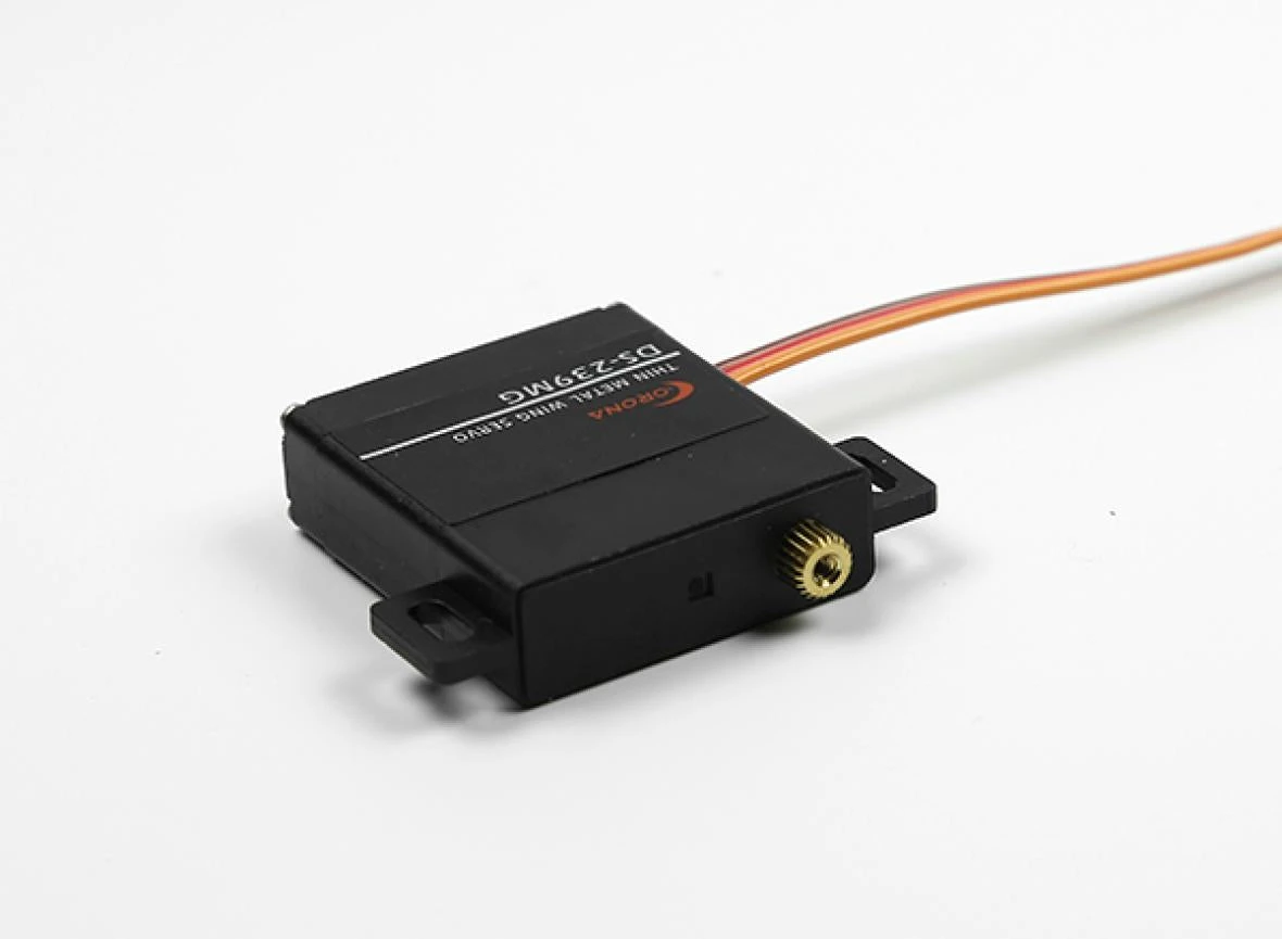 Corona presents the DS-239MG. This low priced, 10mm thick wing servo features a metal gear train which supplies a fair 4.6kg of torque at 6v while dual ball bearings keep things running smooth.