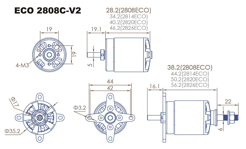 | Motor Mount Hole Spacing | 19x19mm |
