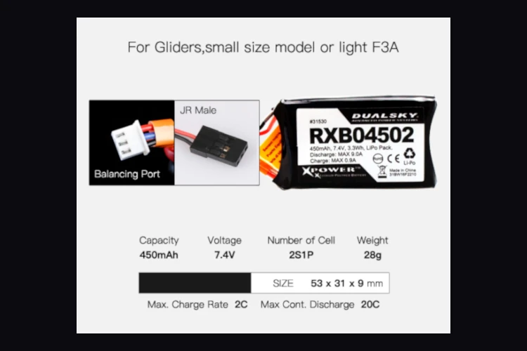 Designed for use in aircraft that use a separate battery instead of a BEC, to power the receiver and servos and any other accoutrements in a particular aircraft.