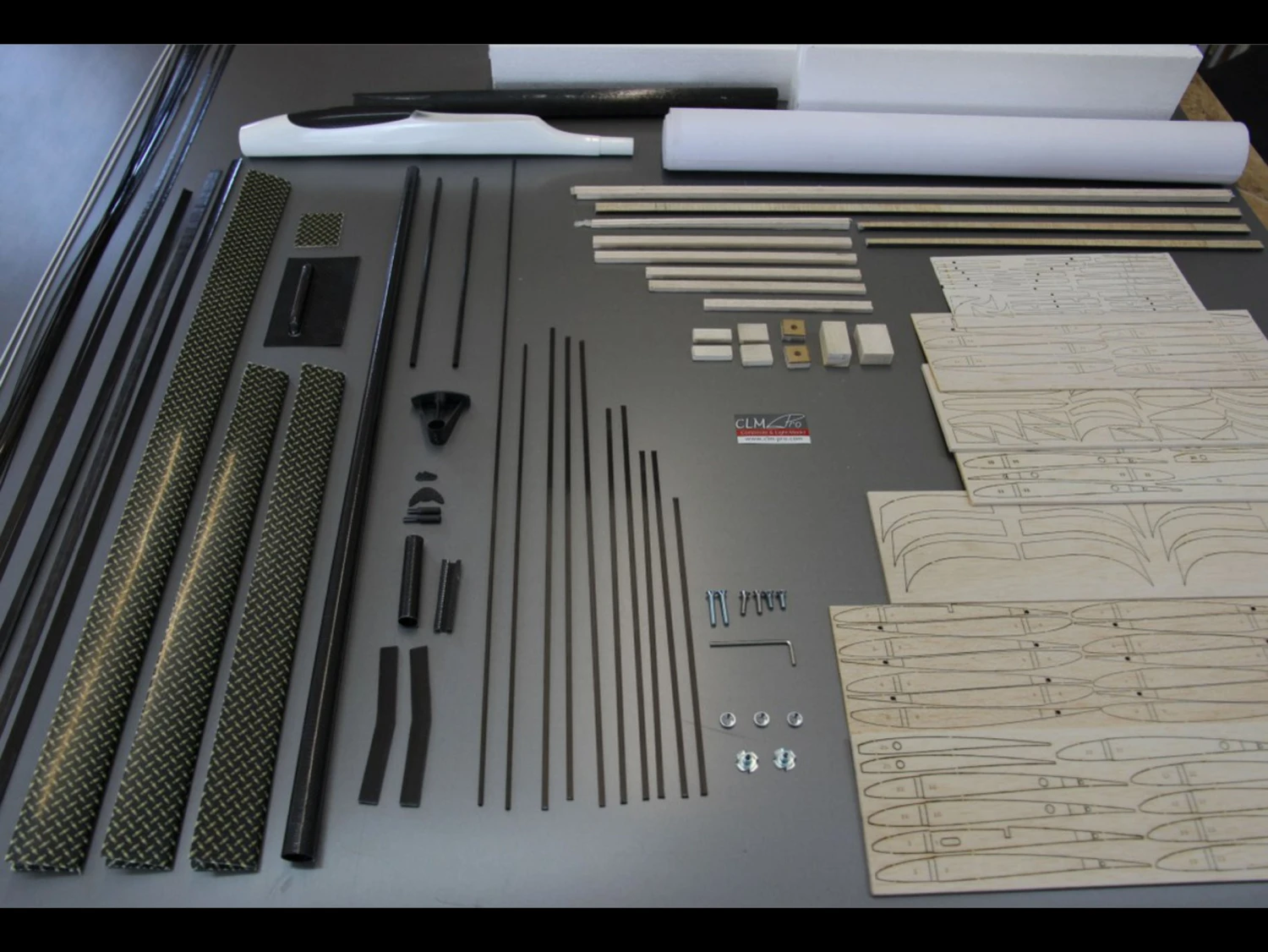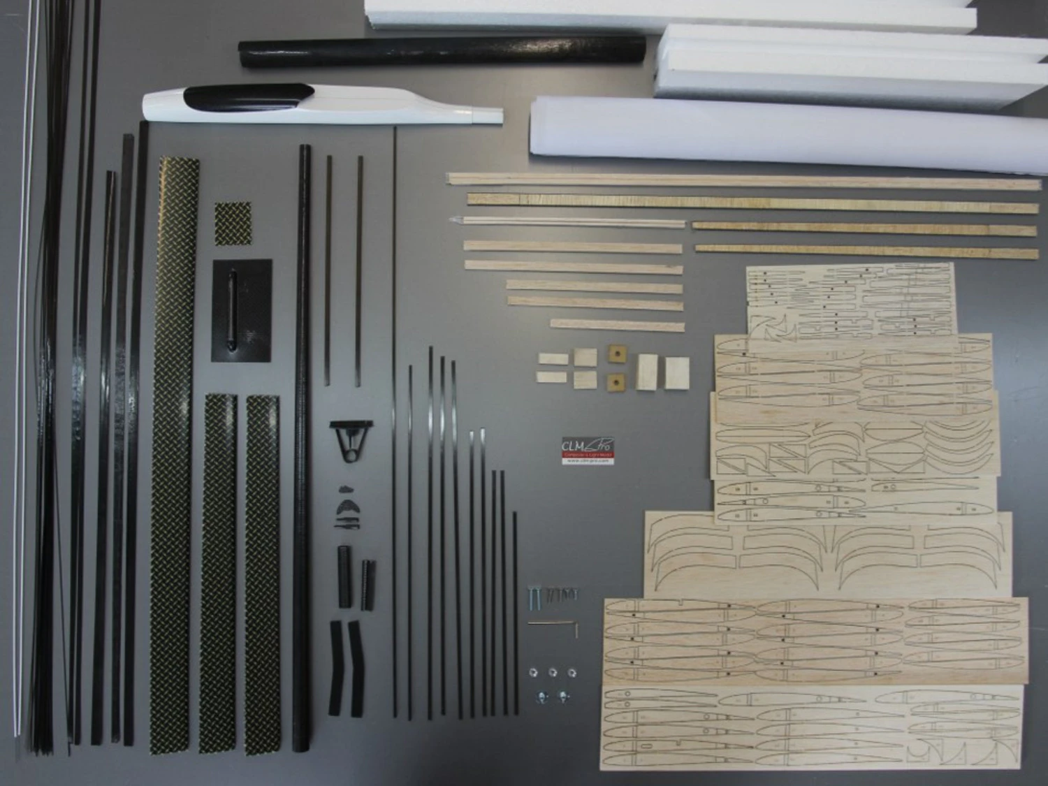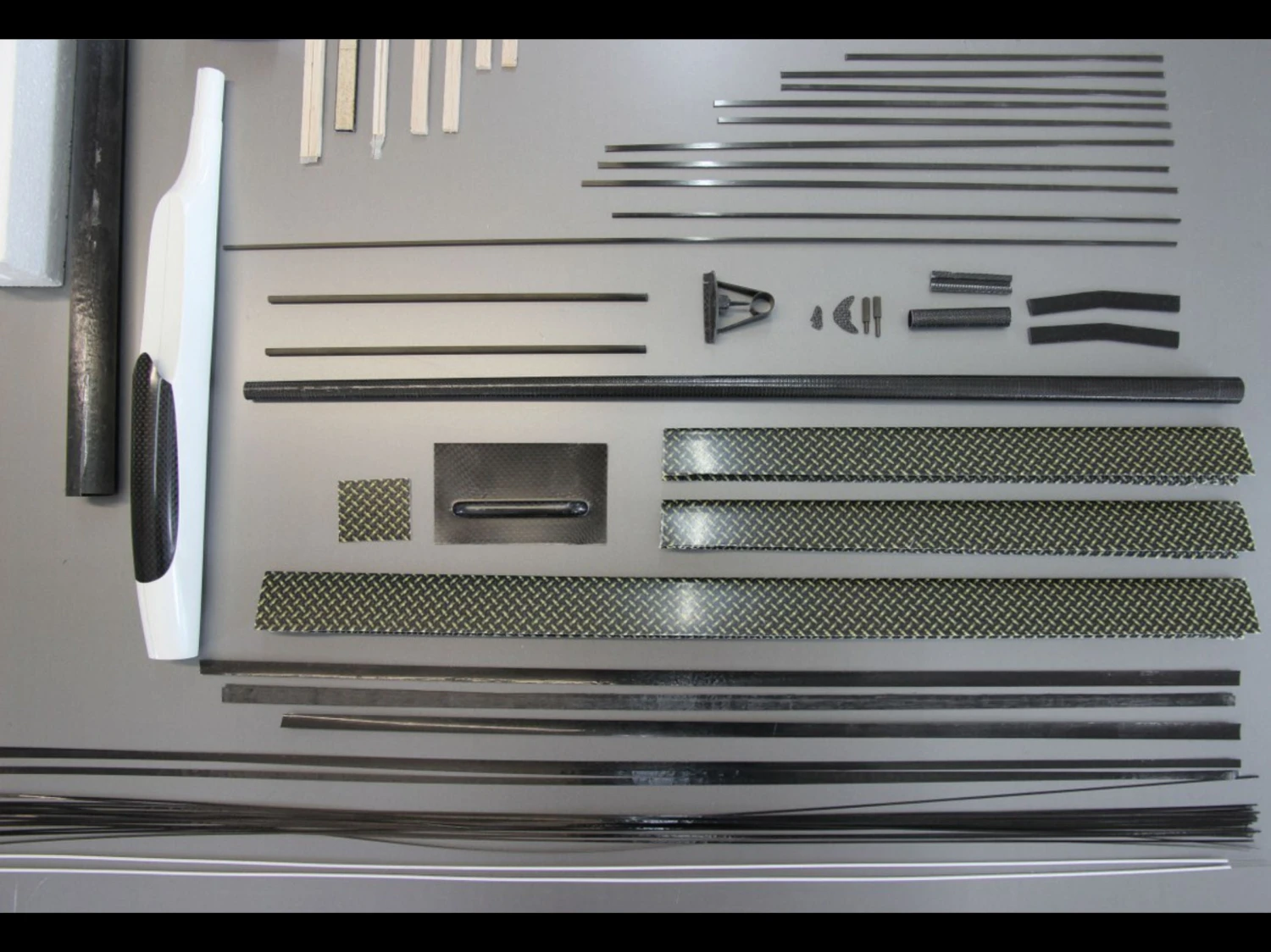 - Completed main-spar ready for mounting and gluing + additional carbon rods for the main-spar