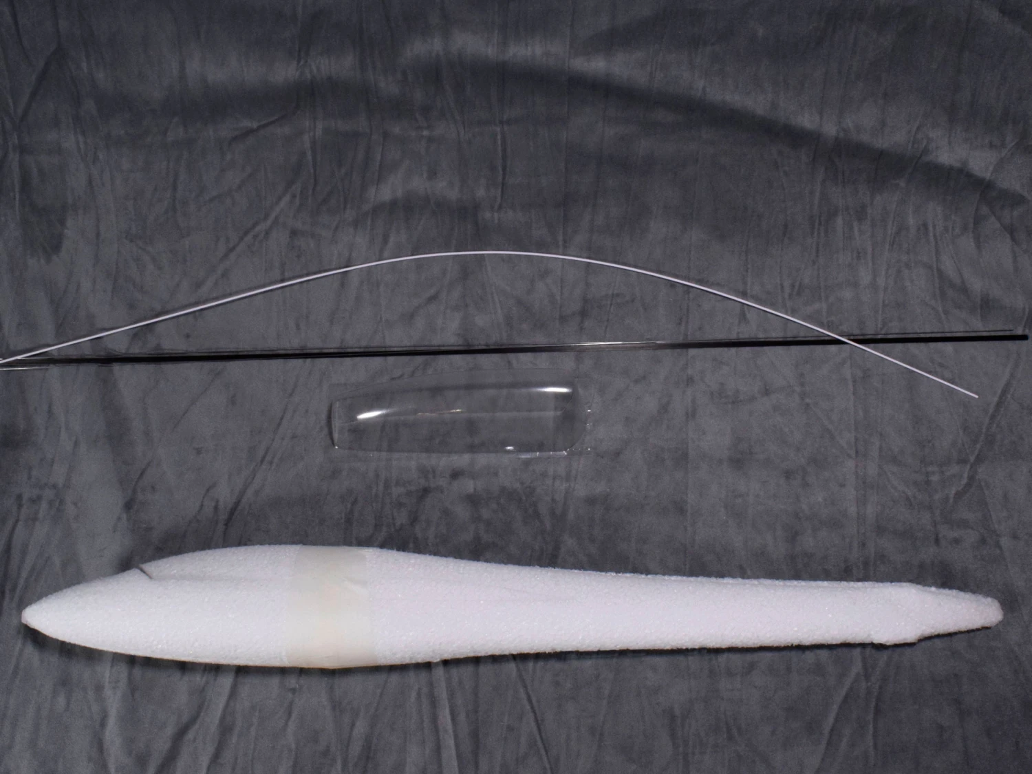Included are all CNC cut EPP foam parts, some carbon strip for the wing spar, pushrod material as well as vacuum formed clear canopy and some Depron for making a canopy frame if desired. You’ll need to carve out servo pockets, battery compartment as well as provide your own hardware such as control horns. For build ideas, check out the build thread on RCGroups HERE