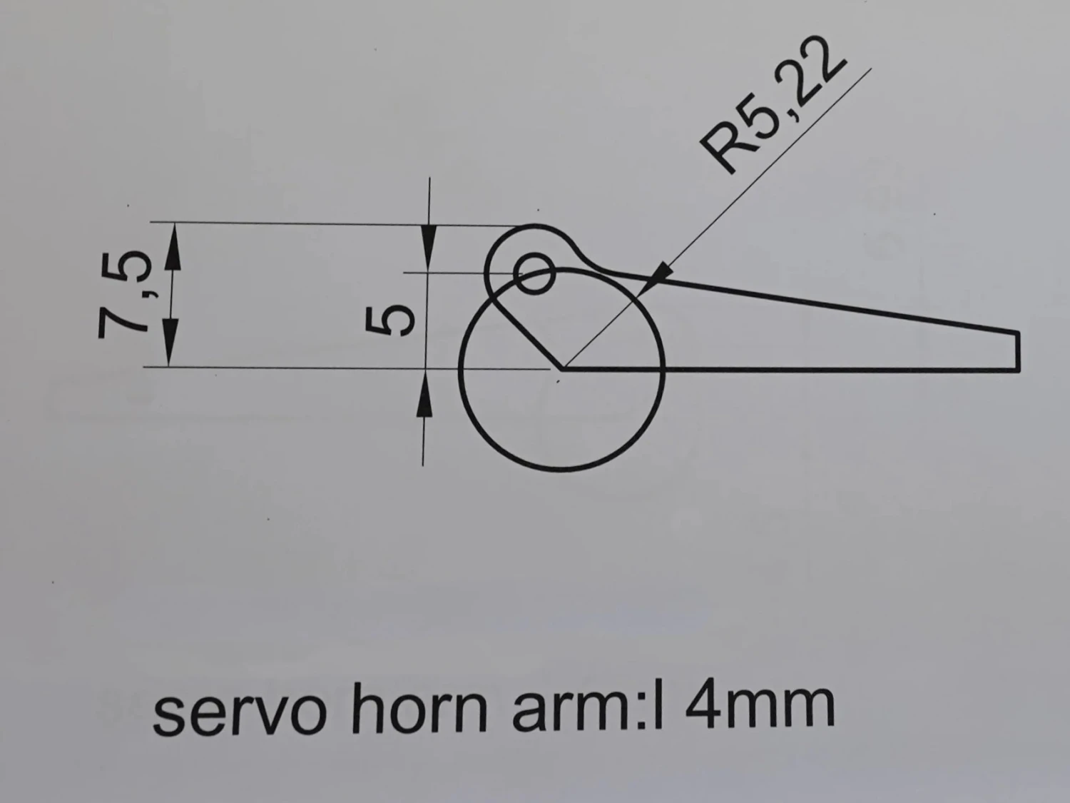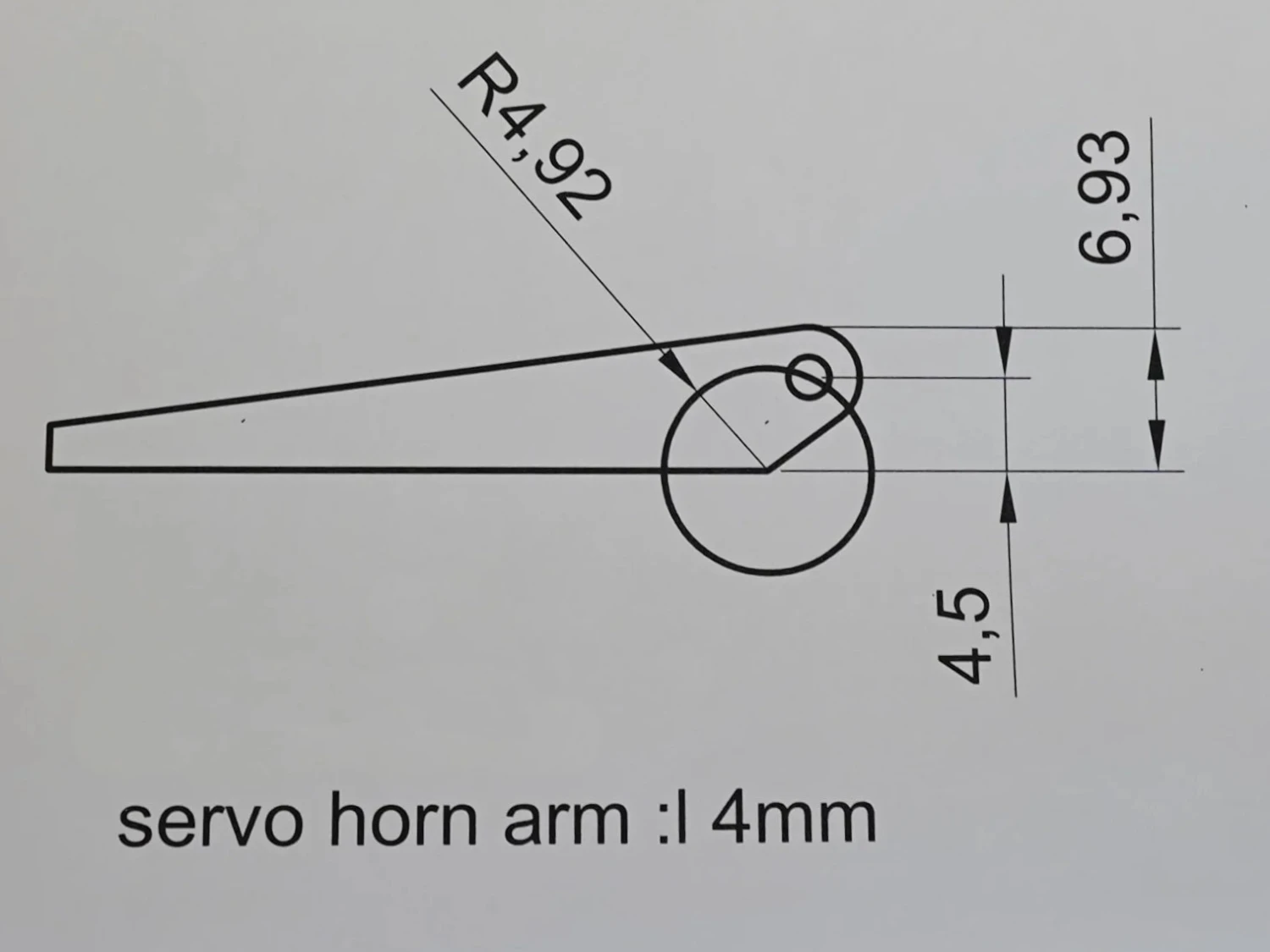 There are a number of ratios available. As the builder you will need to make your own decision as to which ratio to choose. The different ratios are presented like this for example: 6.35mm / 5.83mm. The first number 6.35mm is the “servo arm length” which is the distance from the center of the servo output shaft to the hole in the servo arm. The second number 5.83mm is the “control horn height” which in this case is the distance from the bottom of the horn to the connecting rod hole.