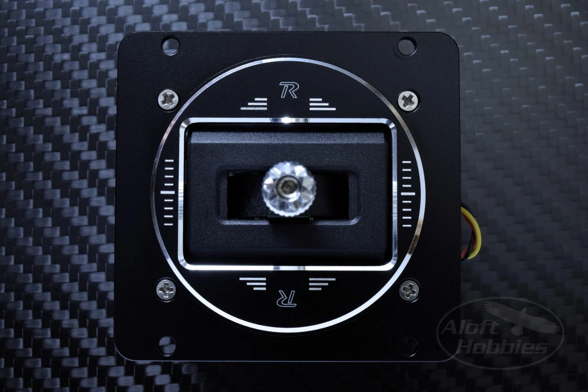 The throttle throw on this gimbal has been reduced to 45°of travel. This allows the pilot to make lightning fast transitions from zero to full throttle and back again quick as a wink.
