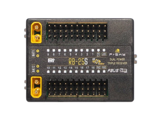RB-25/RB-25S has been designed to offer both dual-power and triple-receiver redundancy. This provides the user triple receiver signal and telemetry redundancy by adding multiplex ports (RX1-3 IN / S.Port). Dual-power provides a safe and efficient way to power the system with your power sources connected via a pair of standard XT30 connections. The dual-power consumption system is designed to operate in balance mode, where it consumes the power line from either power sources depending on which has the higher voltage.