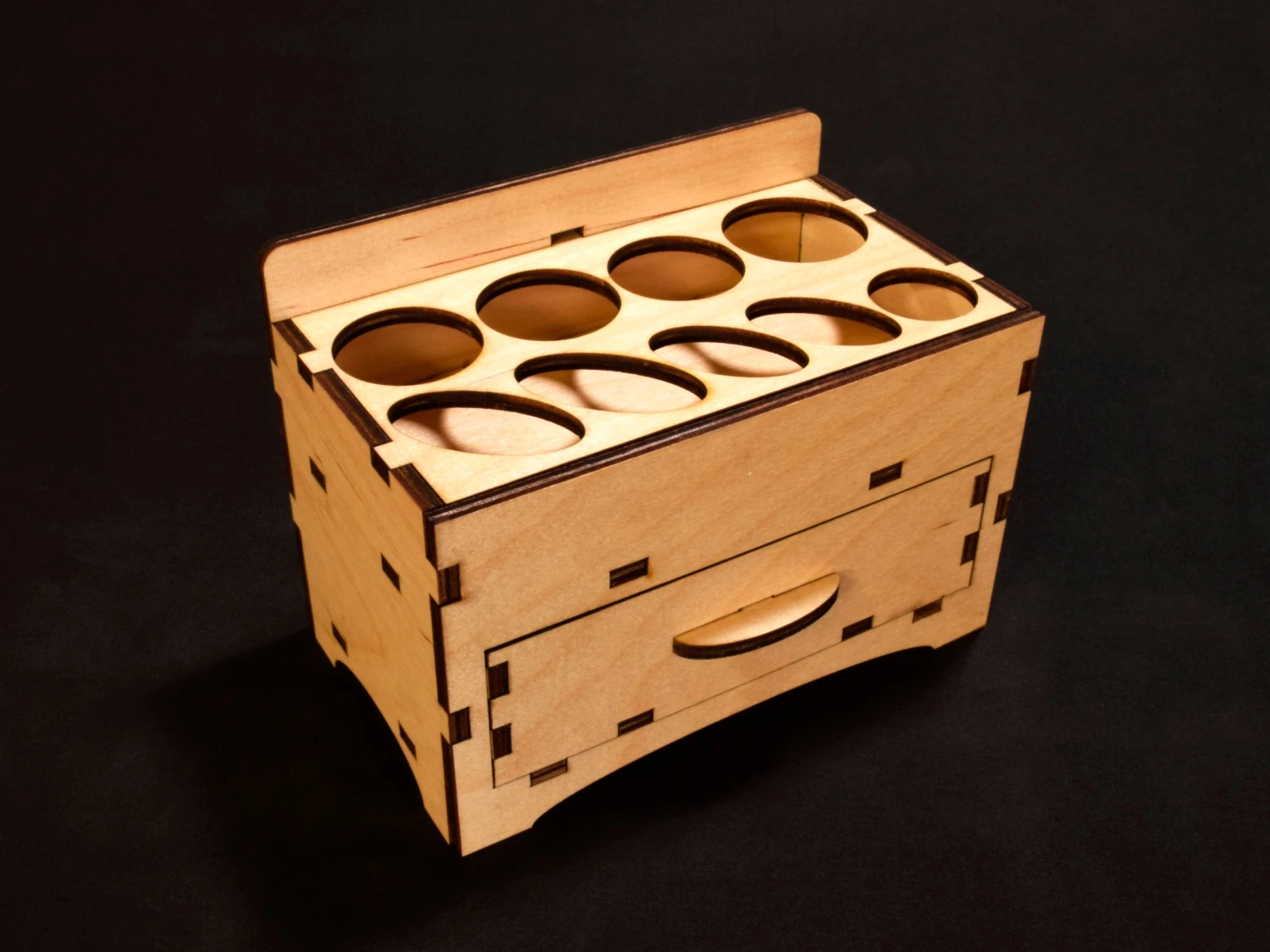 Designed around the BSI adhesives that we love. Stores four of the 1 oz CA, 4.5 oz Epoxy set, 2oz Insta-Set, .75 oz thread lock and 4 oz Foam-Cure. The handy drawer holds those odd and ends and glue accessories.