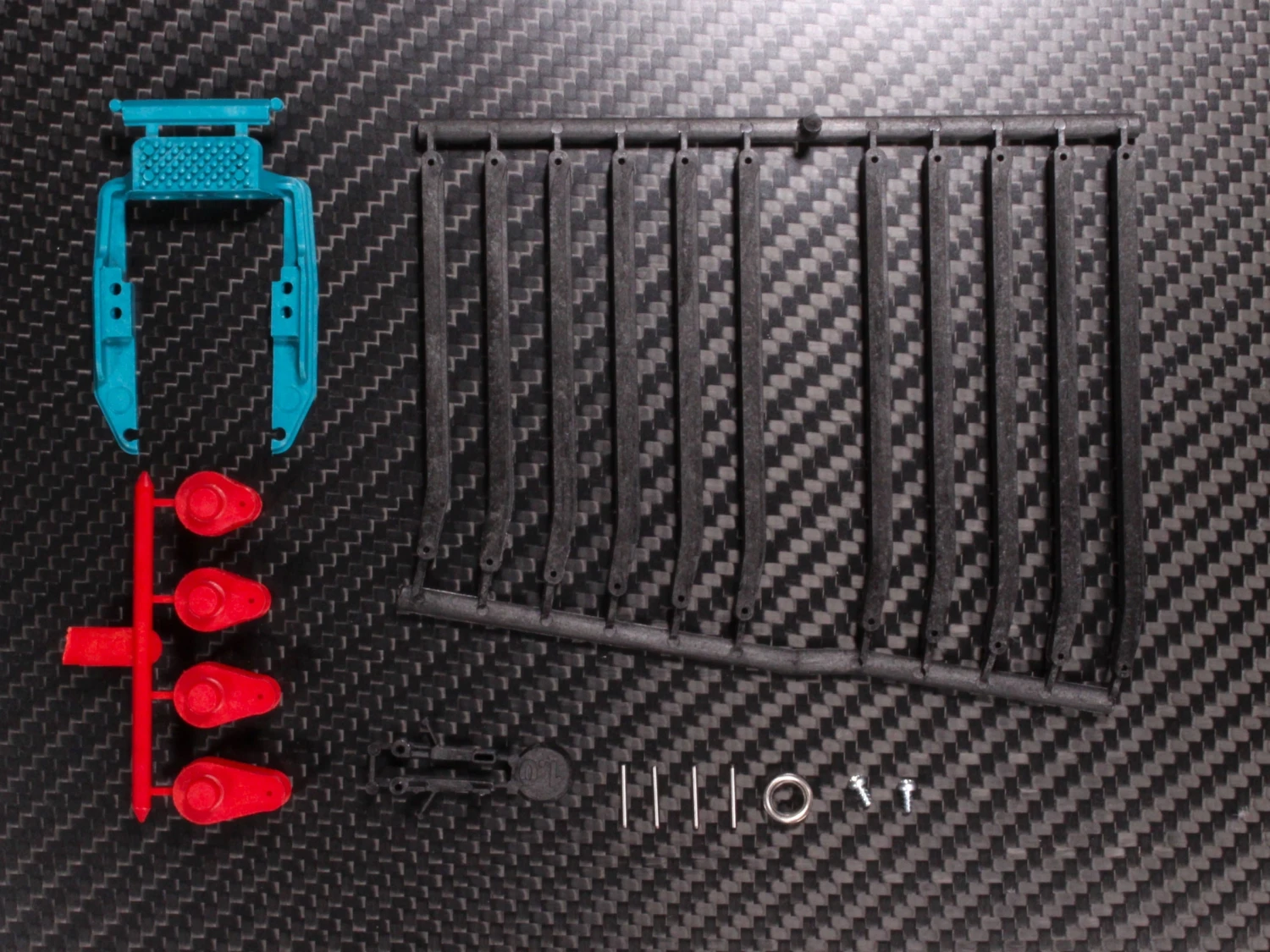 The servo trays have an outboard ball bearing that helps to carry the servo shaft loads and greatly reduces servo linkage play. This superior design minimizes servo slop and reduces drag while simultaneously increasing precision and efficiency. The trays also allow for very easy servo changes. This version is designed to work with MKS HV6110 servos.