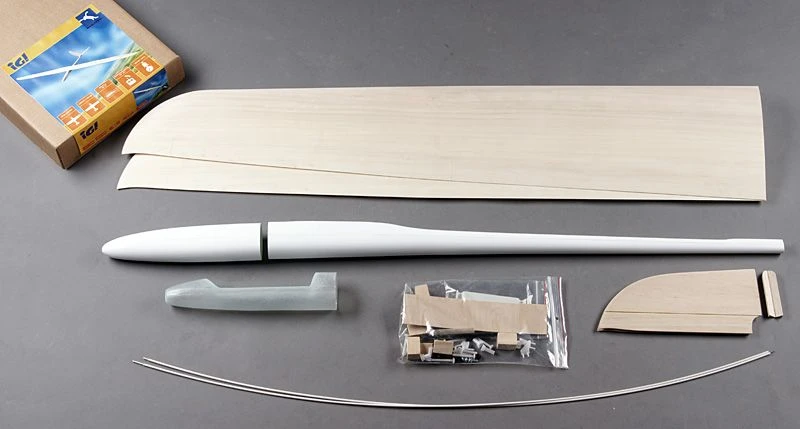 All Blejzyk kits feature beautifully sheeted and fully shaped and sanded wings and tails. Beneath the wood sheeting you will find a sandwich of foam cores and a layer of epoxy fiberglass for added strength in key area. The epoxy fiberglass fuselages get the full treatment too, they are very well made with an eye towards strength and keeping weight down. Carbon tow has been added in high stress areas. We like that the designer has given us room for radio gear and ballast or motor/batteries, but still slender and sleek. The Igi features a slip on nose cone for a very easy radio install.