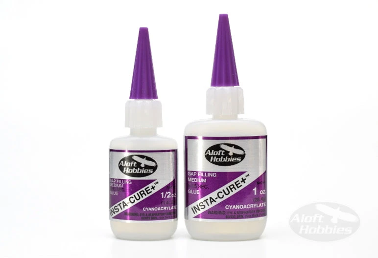 Insta-Cure+™ is a higher viscosity CA for loose fitting joints in which the adhesive must bridge gaps. Normally, the thicker CA is applied to one surface and then the parts are held tightly together for about 5 to 15 seconds. For large surface areas, including those with close fitting joints such as laminations, INSTA-CURE+ ™ should also be used. To prevent premature curing, don’t spread the glue into a thin film. Lay down a serpentine bead with about 1″ separations on one surface, then assemble the parts, letting the pressure spread the CA out.