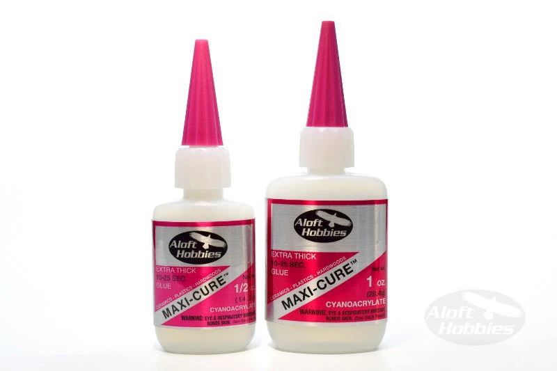 MAXI-CURE™ bonds fiberglass, hardwood, metal and rubber better than any other hobby adhesive. For gluing to the inside, cloth textured surface of fiberglass, scrape the area to be bonded with a razor blade or coarse sandpaper before using MAXI-CURE™ or any other adhesive. It also is best for bonding the tires for R/C cars.
