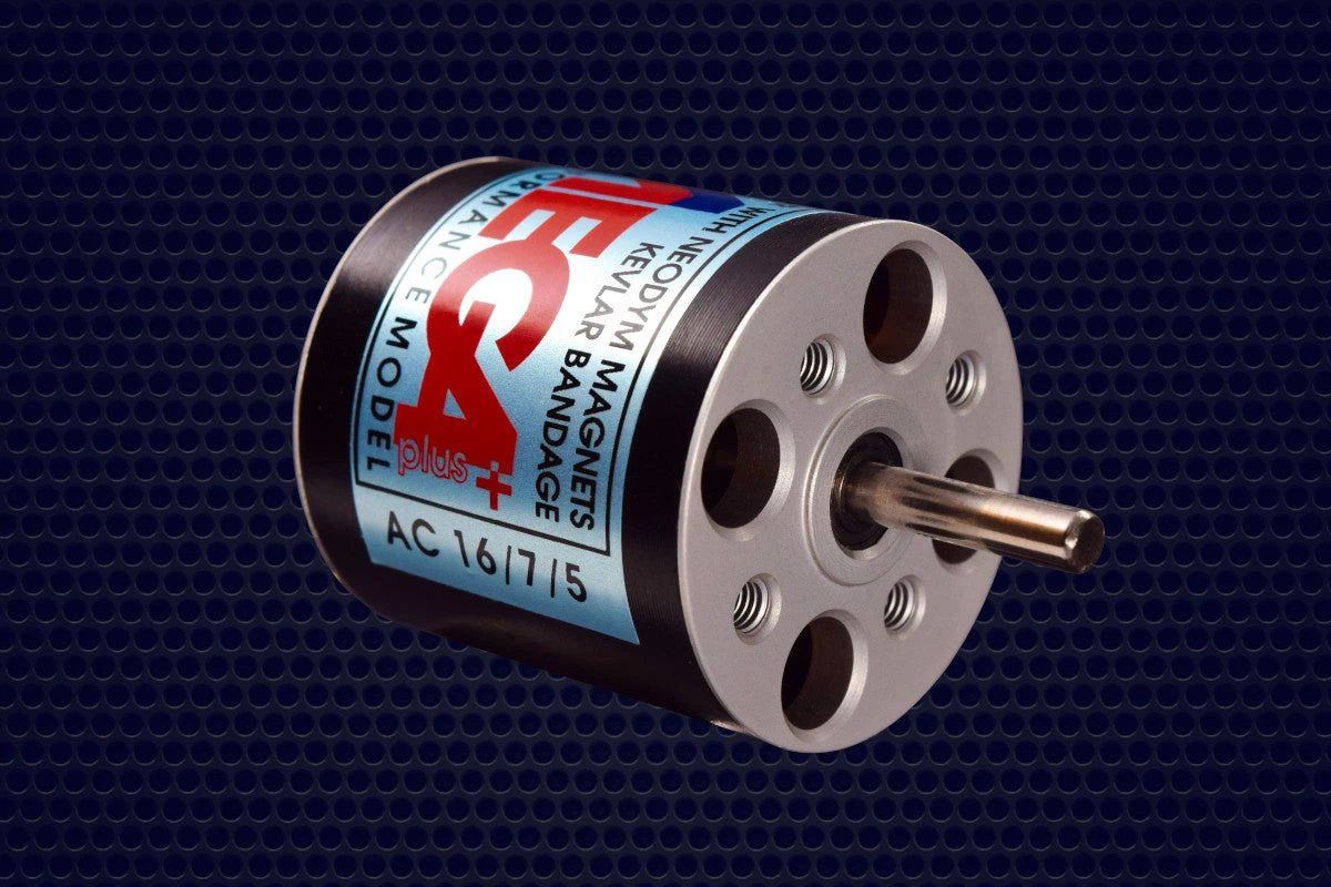 The Mega ACn 16/7/5 is a 3 Phase, 6 pole, permanent magnet inrunner, with a hardened steel 3mm shaft riding on high quality ball bearings. The lightweight rotor is loaded with neodymium magnets and wrapped in kevlar and then dynamically balanced. The kevlar holds the magnets in place, withstanding RPMs in excess of 50,000 (55k max).