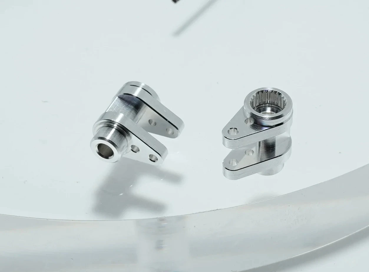There are a number of ratios available. As the builder you will need to make your own decision as to which ratio to choose. The different ratios are presented like this for example: 6.35mm / 5.83mm. The first number 6.35mm is the “servo arm length” which is the distance from the center of the servo output shaft to the hole in the servo arm. The second number 5.83mm is the “control horn height” which in this case is the distance from the bottom of the horn to the connecting rod hole.