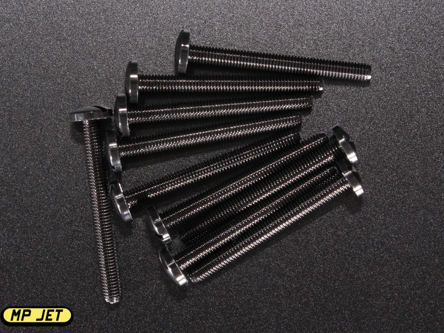 MP Jet M3 x 30mm pan head screw with a common slotted head.