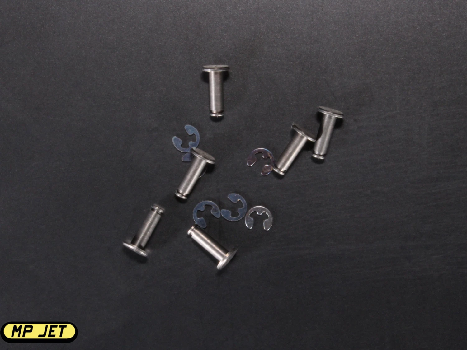 MP Jet, replacement steel clevis pins 2mm diameter. Comes with E-Clips