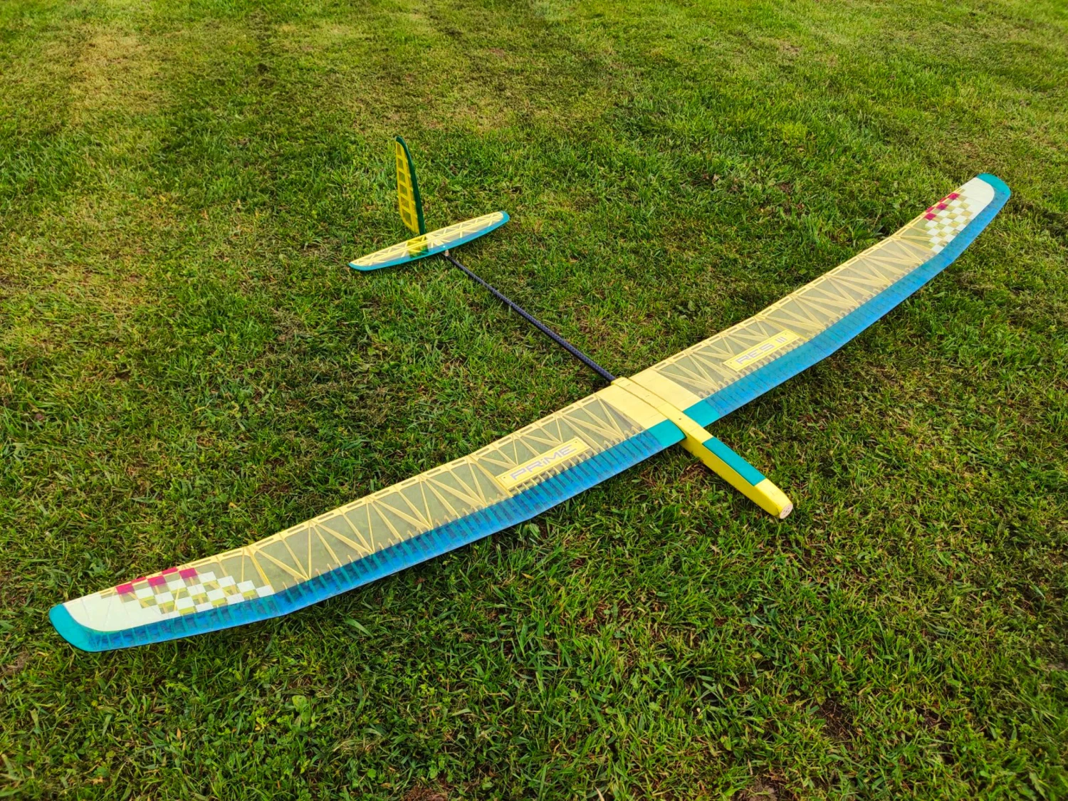 The main construction of the wings is built with full balsa ribs, plywood for trailing edges and reinforcements are used where needed. Composite materials are used for leading edges and main-spars according to FAI F3 RES rules.