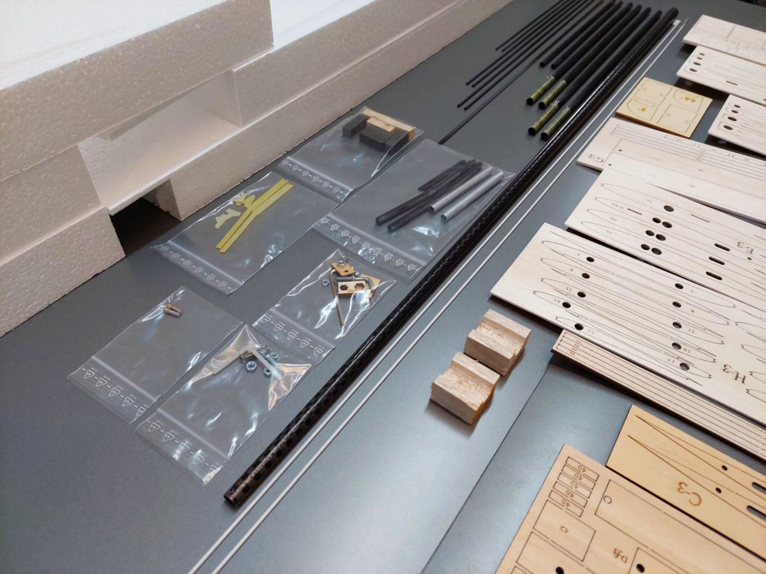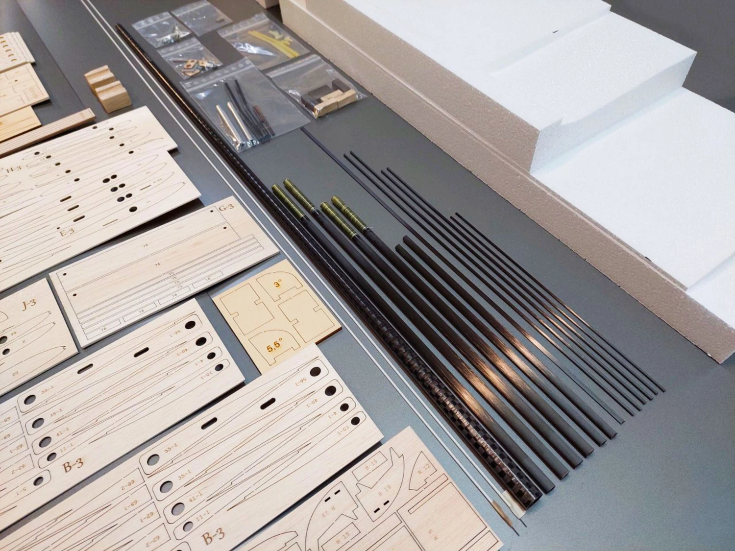 You also get a CNC cut styrofoam jig for easier wing alignment and glueing.