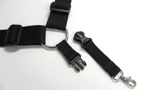 The Revoc harness has a four-point adjustment system that allows you to tailor the harness to your body shape. The straps are a comfortable 40mm wide and terminate in hiking gear quality buckles. The back pad has a durable Nylon outer shell, a layer of padding and finally a layer of breathable nylon mesh. The harness’ single point connection strap is terminated with a metal hook that securely clips into the metal loop on your transmitter. In addition to the metal hook, the connection strap sports a quick release buckle that makes it easier to connect and disconnect the transmitter from the harness.