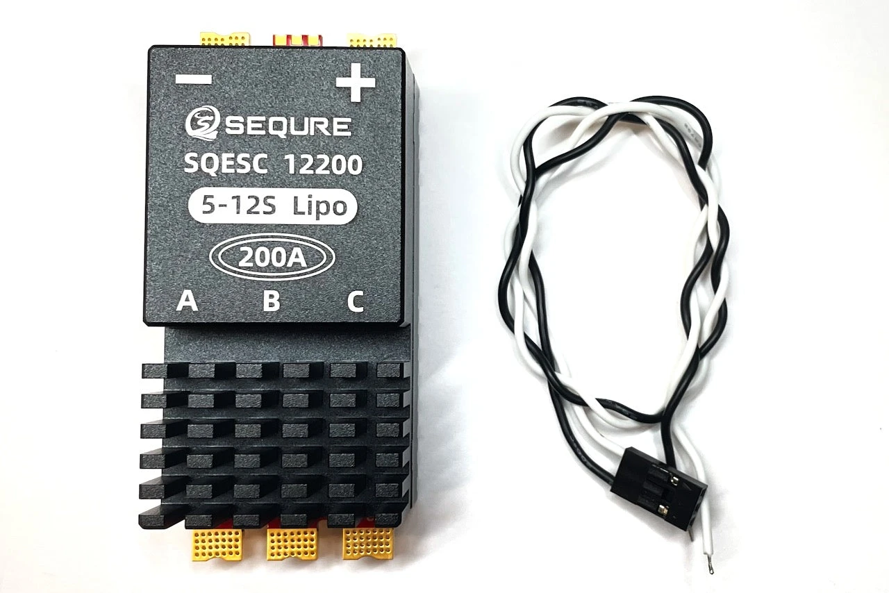 The Sequre 200 amp ESC is small in size, but very powerful. (Can handle spikes to 250 amps!) Great for high speed models. We like the heatsinks top and bottom, it both protects the ESC from heat, but also acts as armor.