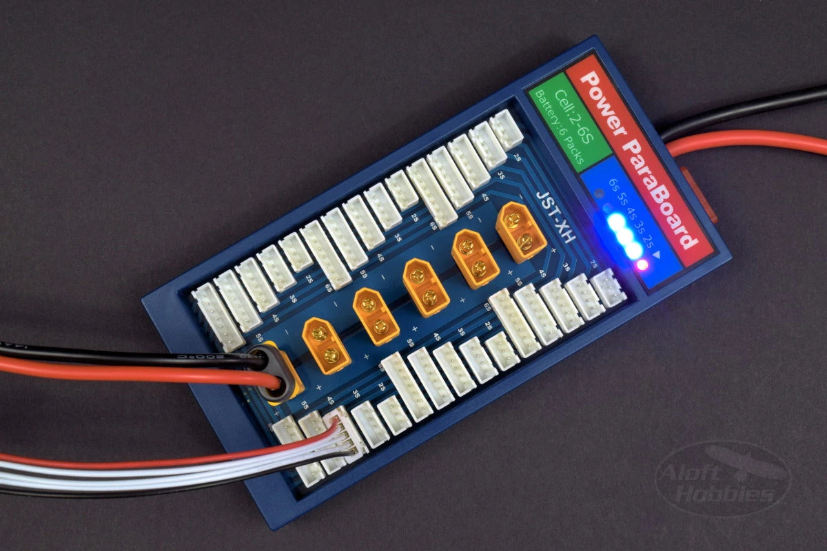 If you need to charge more than 6 batteries at a time, you can daisy chain two ParaBoards together but be mindful not exceed the 35 amp max charge rating or you may blow the fuse.