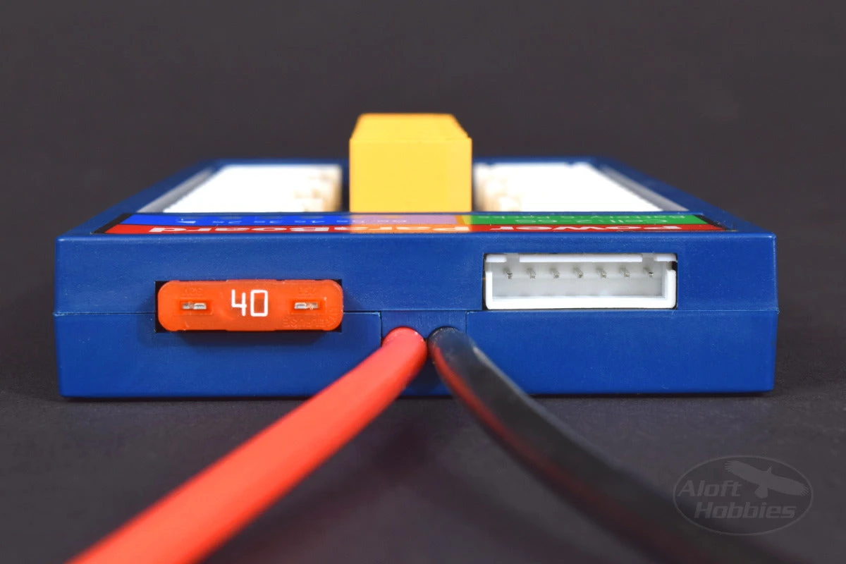 The ParaBoards are constructed from 1.5mm fiberglass pc boards with 2oz copper traces. The main bus bar has been built up with solder to increase its current handling, resulting in a 25amp continuous current output and a maximum current output of 35 amps for a period of 10 to 15 minutes. The injection molded cases are made from a special, fire resistant ABS plastic.