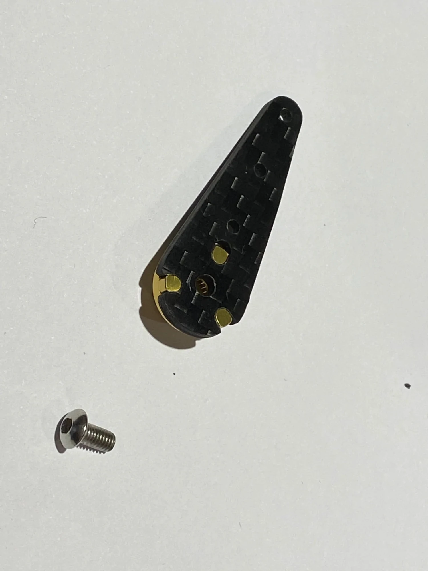 High performance servo horns produced by Tomas Liu Studios. The spline is manufactured from 7075 aluminum and the horn from carbon fiber. (see pics)