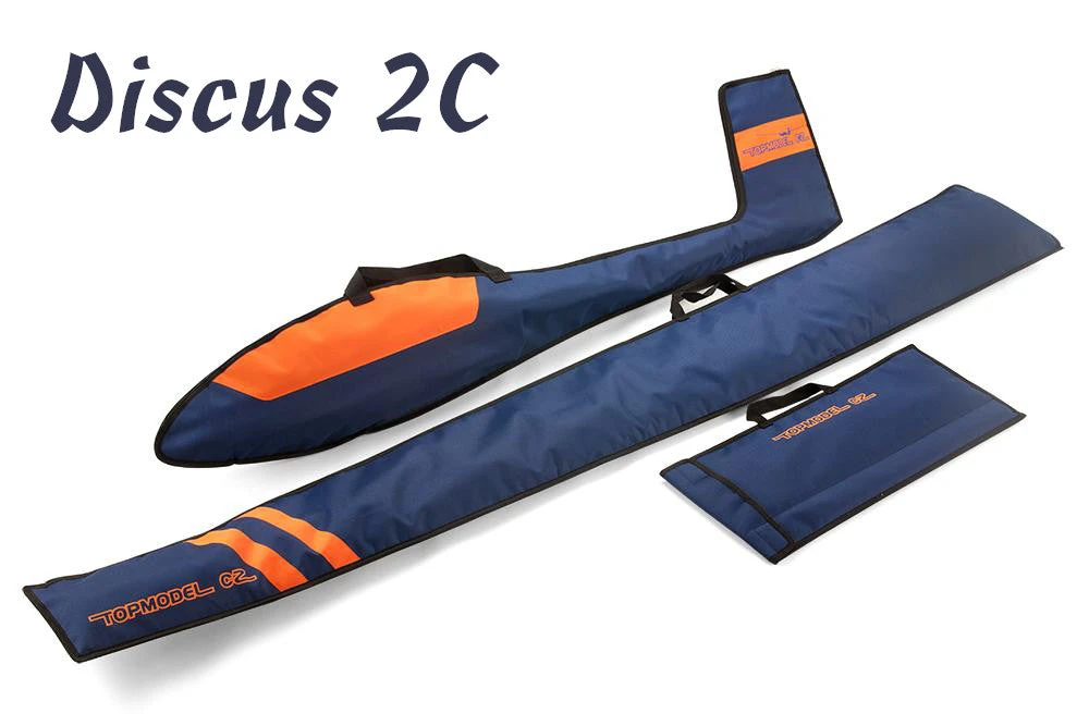 - Discus 2C 4.5m: 2 piece wing, wing bag root 10″x 84″ / Fuselage bag 62″ long, 14″ high at the rudder and 8″ at the highest point in the canopy area. Elevator / wing joiner bag 9″x 24″.