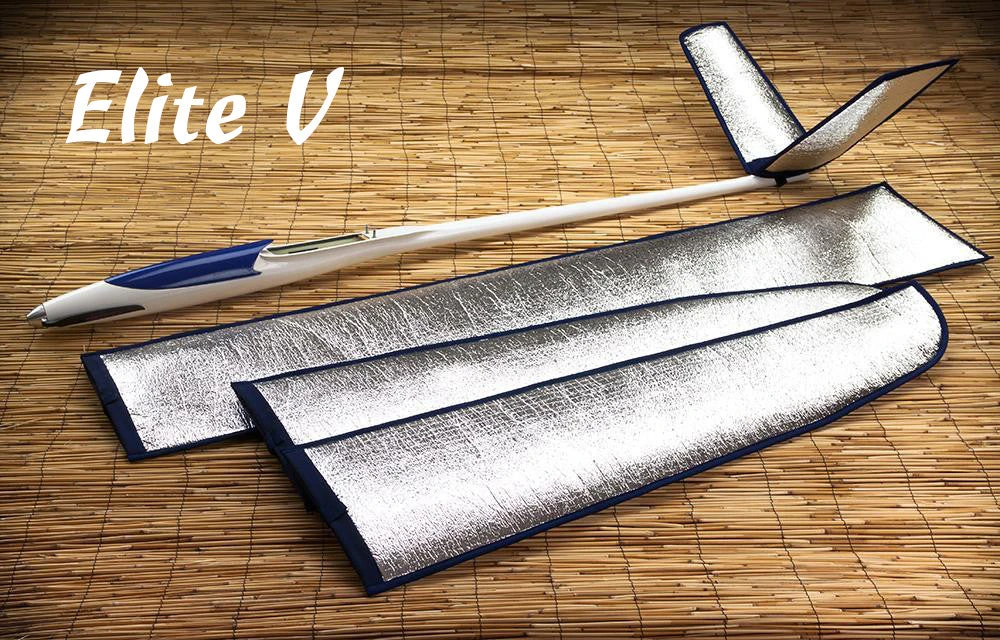 - Elite V 2.6m: 3 piece wing, center section, root 10″x 42″ / wing tips 37.5″ / V-Tail, root 6″x14.5″