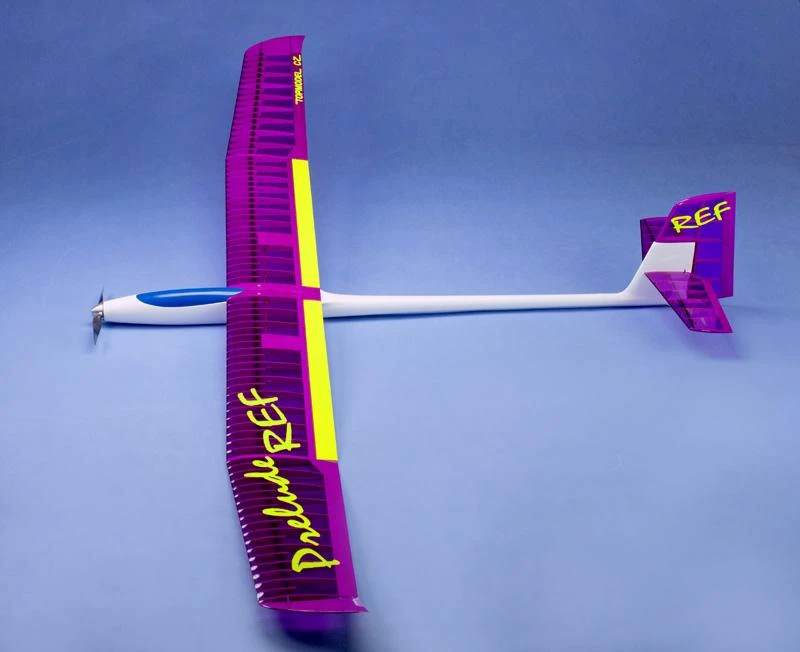 The Prelude REF is an excellent thermal ship that features a sleek fiberglass fuselage that is light yet strong with ample room for gear. A beautiful transparent wing and empennage offer excellent performance. The MH32mod airfoil allows the Prelude to float around in a thermal, yet also speed through the sink when searching for the next lift bubble.
