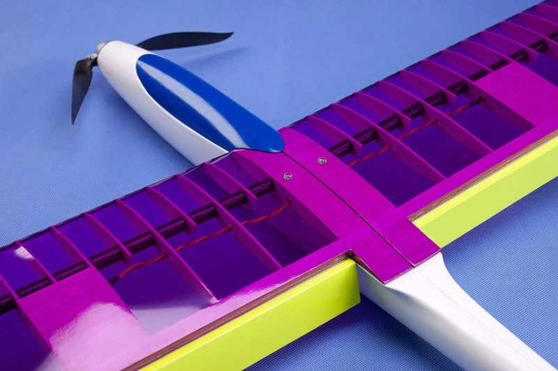 - Two-piece built up wing with strong carbon fiber spars and finished with Oracover® film